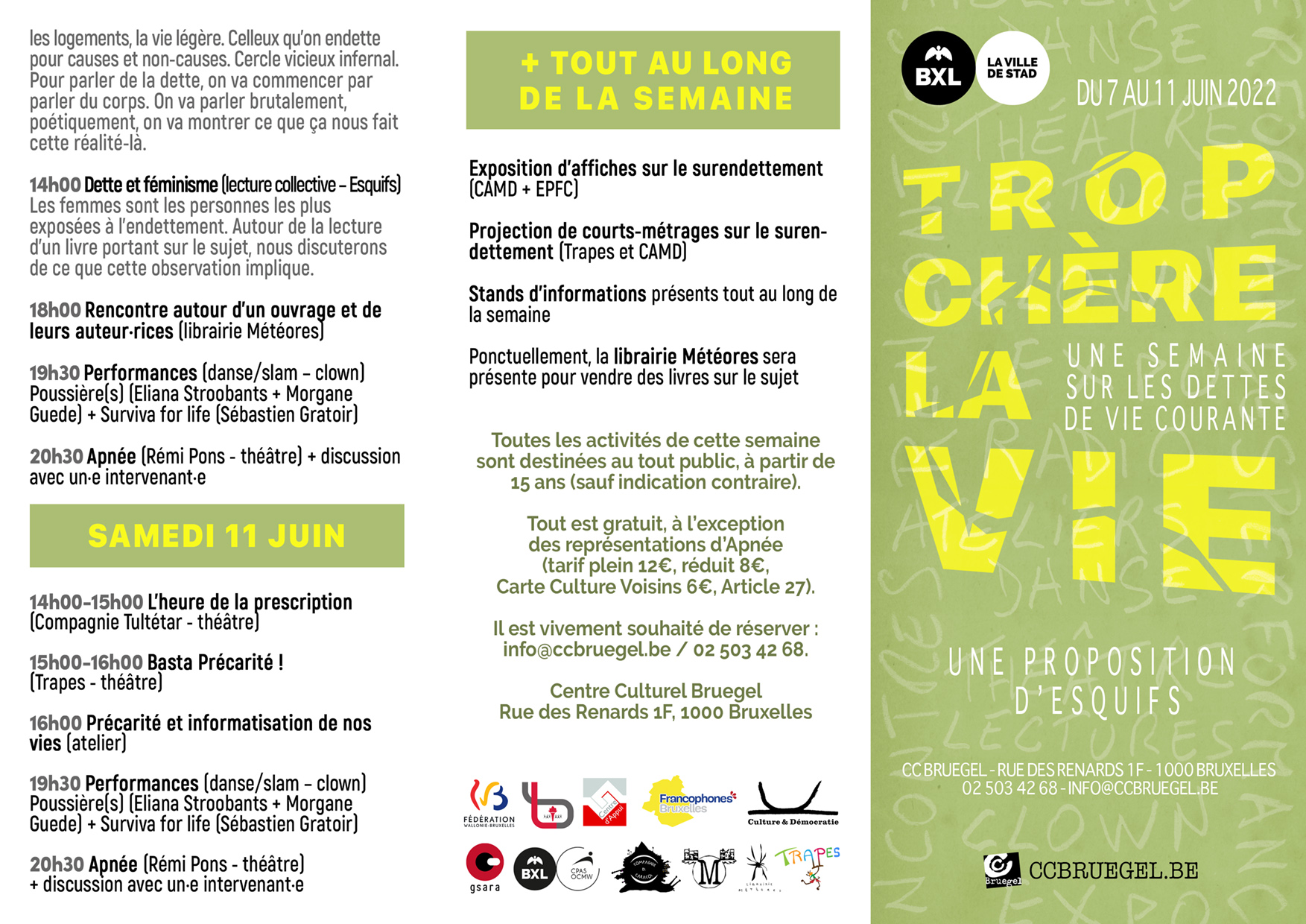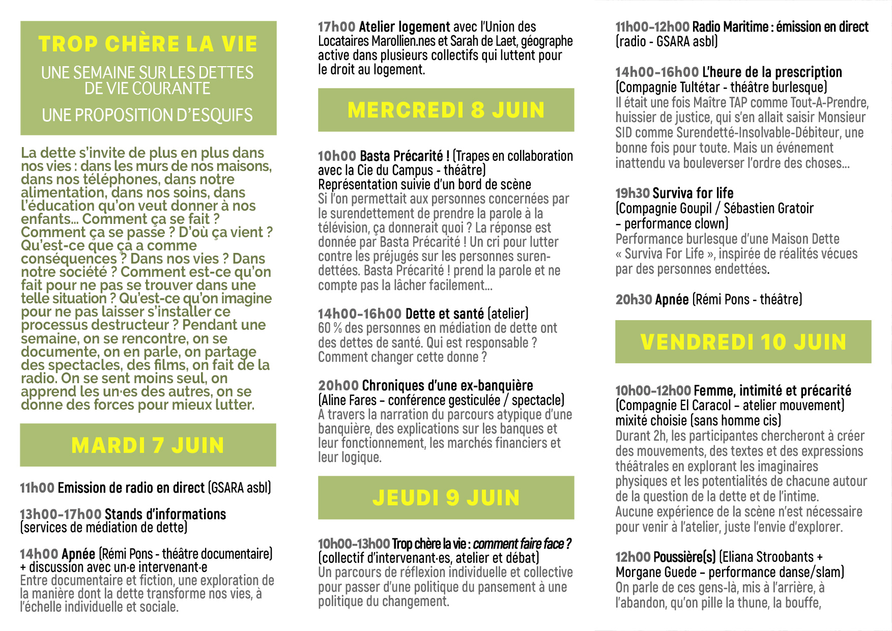Voici l’info sur la semaine où l’asbl TRAPES présente son spectacle et a un stand.