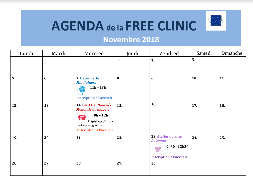 > Il reste quelques places vous pouvez encore vous inscrire à l’accueil ou par mail : aude.delmas@freeclinic.be