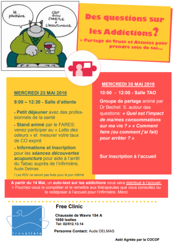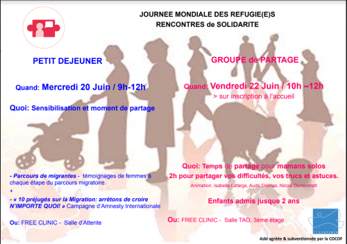 Ces 2 activités se font sur inscription (via l’accueil ou par mail aude.delmas@freeclinic.be).