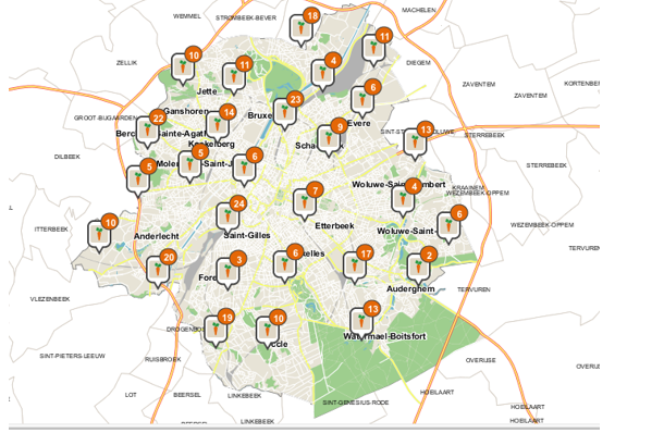 Vous pouvez consultez la carte ci-dessous et le site du Réseau des potagers urbains bruxellois pour plus d’informations.