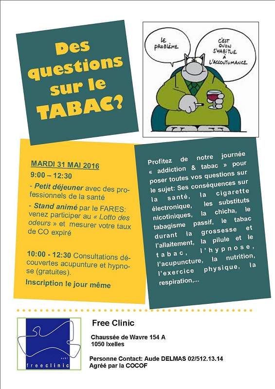 A l’occasion de la journée sans tabac, la Free Clinic vous invite à partager un petit déjeuner le mardi 31 mai 2016