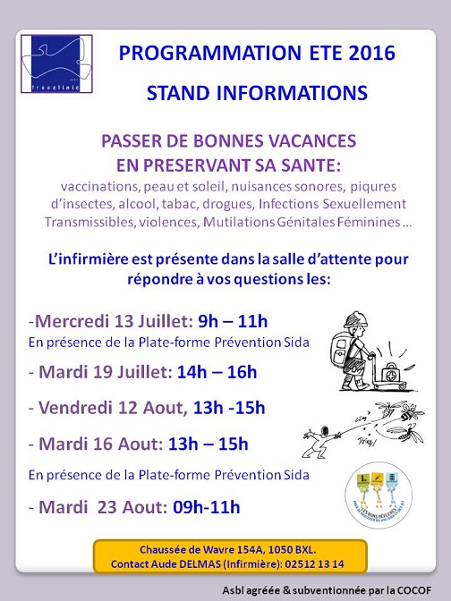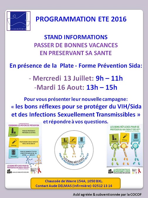 Stand info "prévention pour les vacances " à la Free Clinic cet été