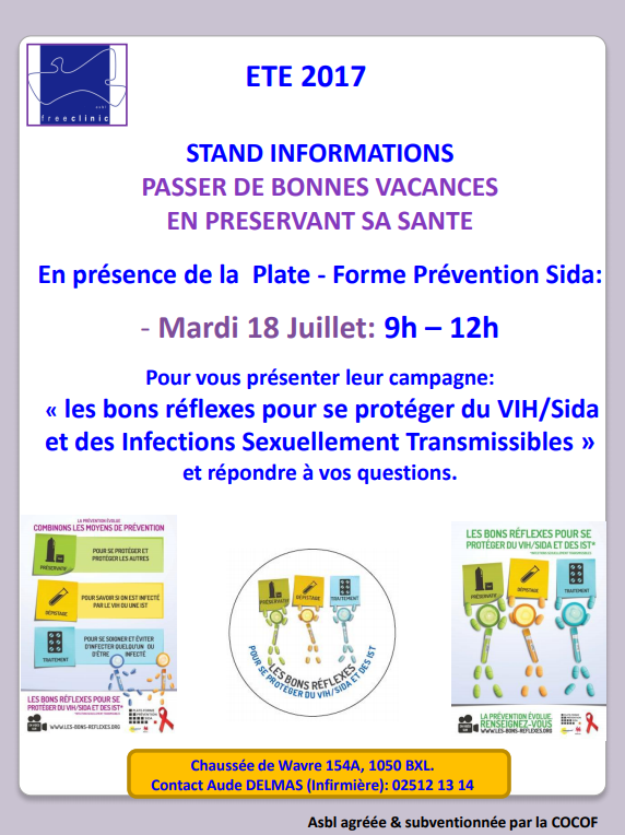 La Free Clinic vous invite le vendredi 18/07 à rencontrer des travailleurs de la Plate Forme Prévention Sida.